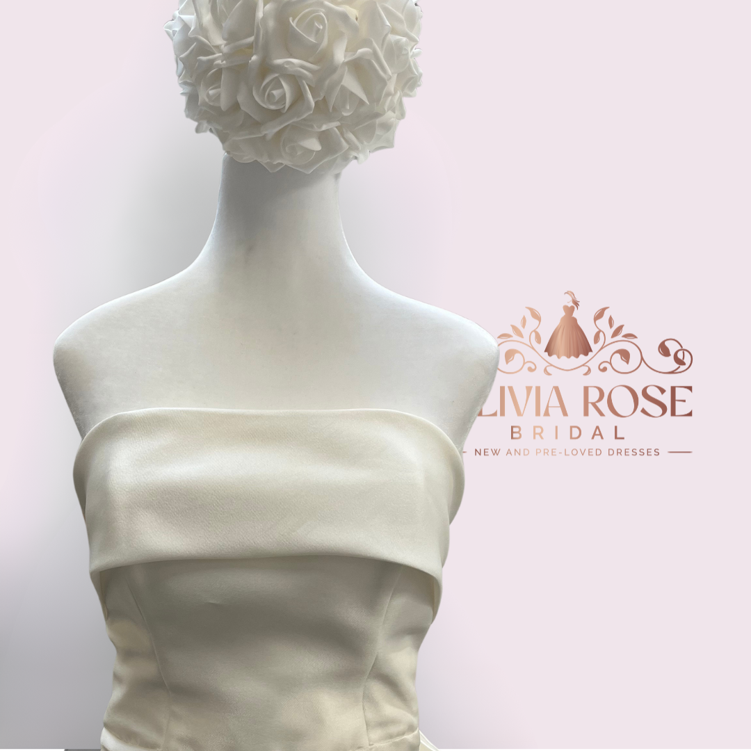 • Look 1: Strapless slim-fit gown with soft folded neckline – clean, classic, and timeless