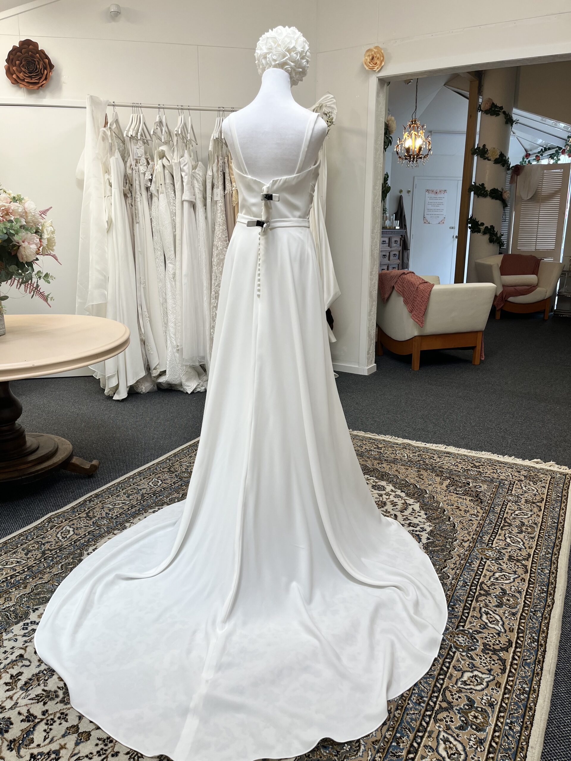 The Forget Me Knot – Carol gown (originally the Forget Me Knot Eva gown) is a beautifully romantic choice for the modern bride, now available at our Kapiti bridal boutique as a pre-loved wedding dress that is new and unworn.