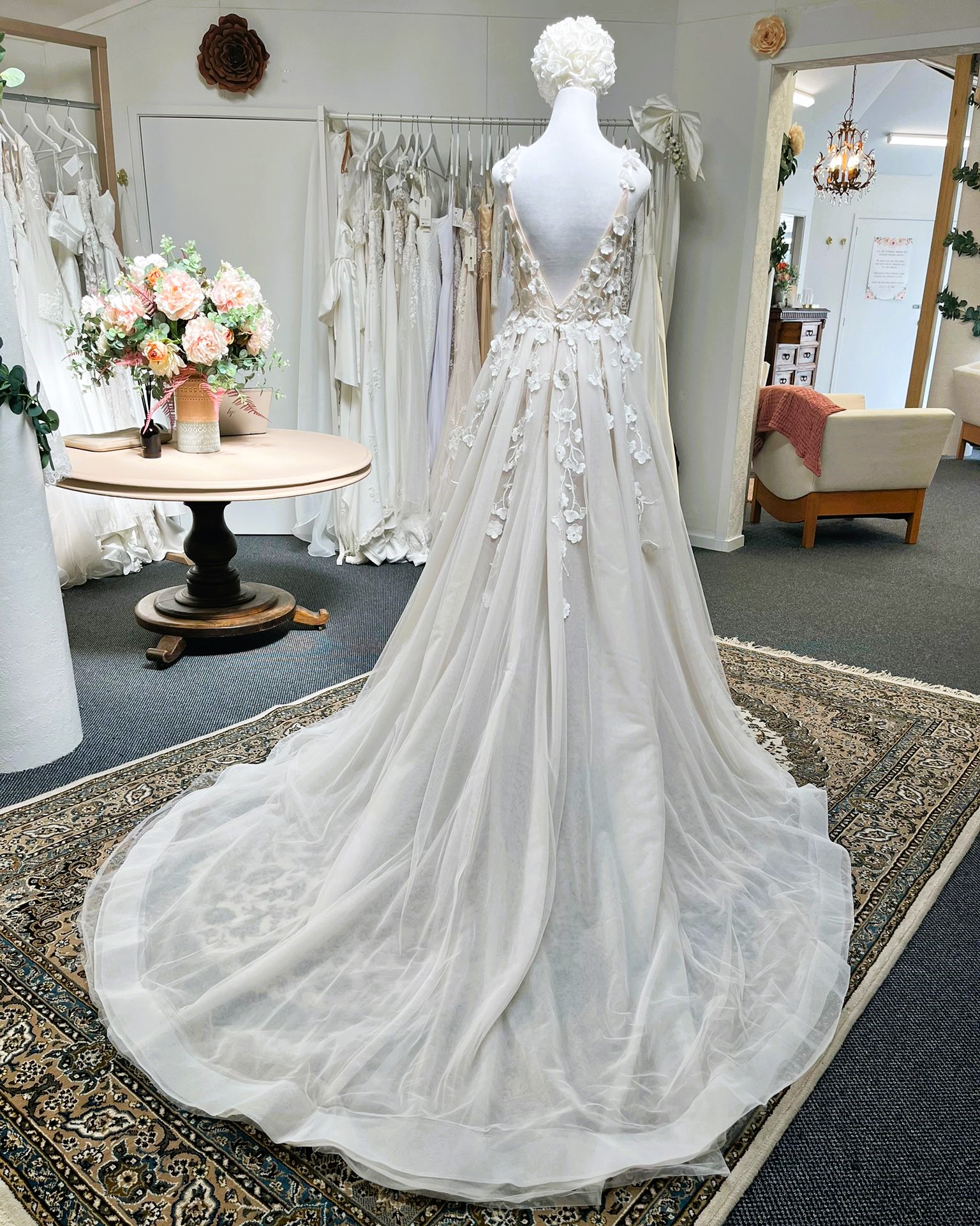 As a pre-loved wedding dress, it allows brides to enjoy a designer gown while embracing a sustainable and conscious approach to bridal fashion.