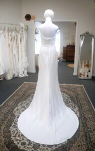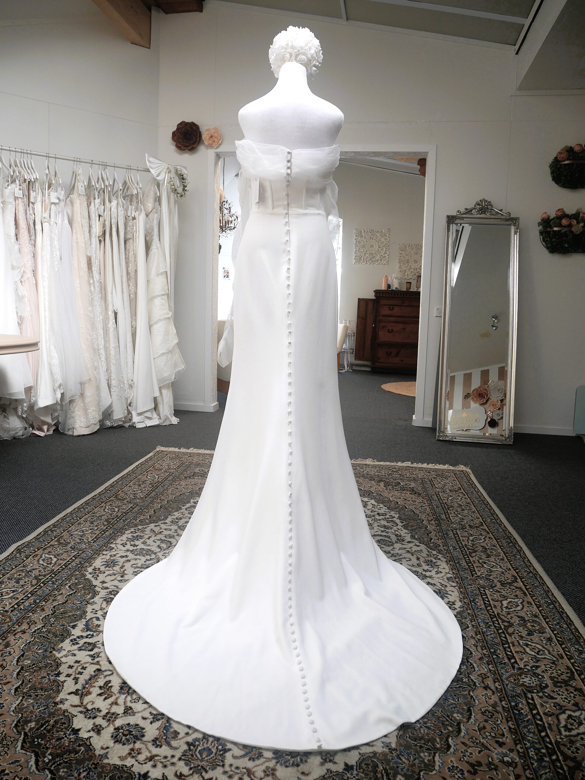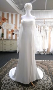 This designer dress by Trish Peng, one of New Zealand’s most loved bridal designers, is available pre-loved at Olivia Rose Bridal Boutique, located in Paraparaumu Beach, Kapiti, NZ. Experience the beauty of sustainable bridal fashion — where every dress tells a story.